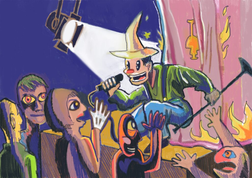 When the covid period hit, I started doodling cartoons with 2 friends and we kind of came up with this cast of characters. It was just a way to lift our spirits I guess. After a month or two the informal collaboration ceased again, but I kind of wanted to do something with these characters. That inspired me to make a video game and some of the designs in the game are still from that time. However, the world and characters evolved way beyond those initial designs.